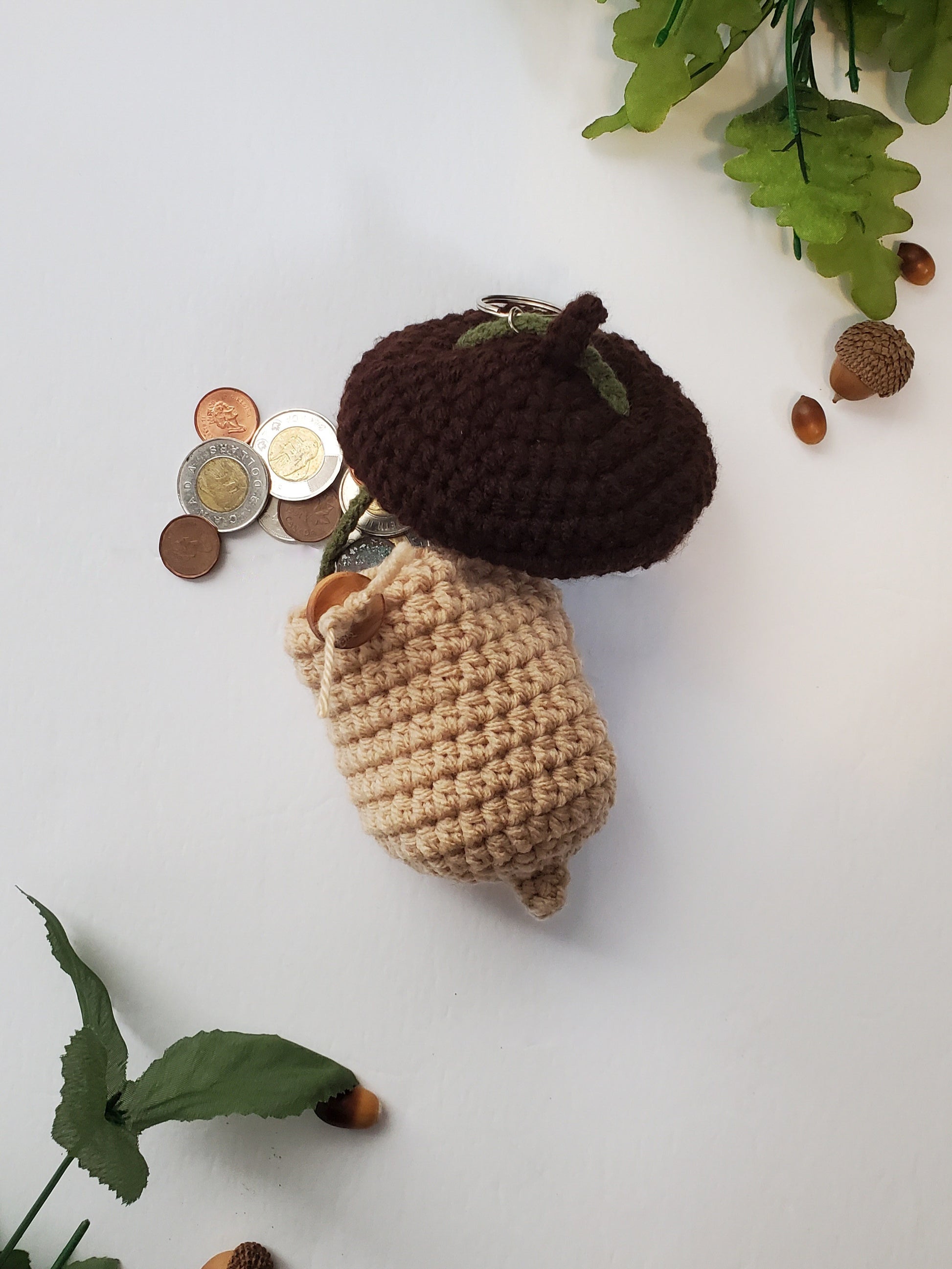 -Worsted weight yarn in whichever color combinations you would like (basic colors: Beige, Dark Brown, Green), Thicker, more rigid worsted weight yarn creates a sturdier purse.