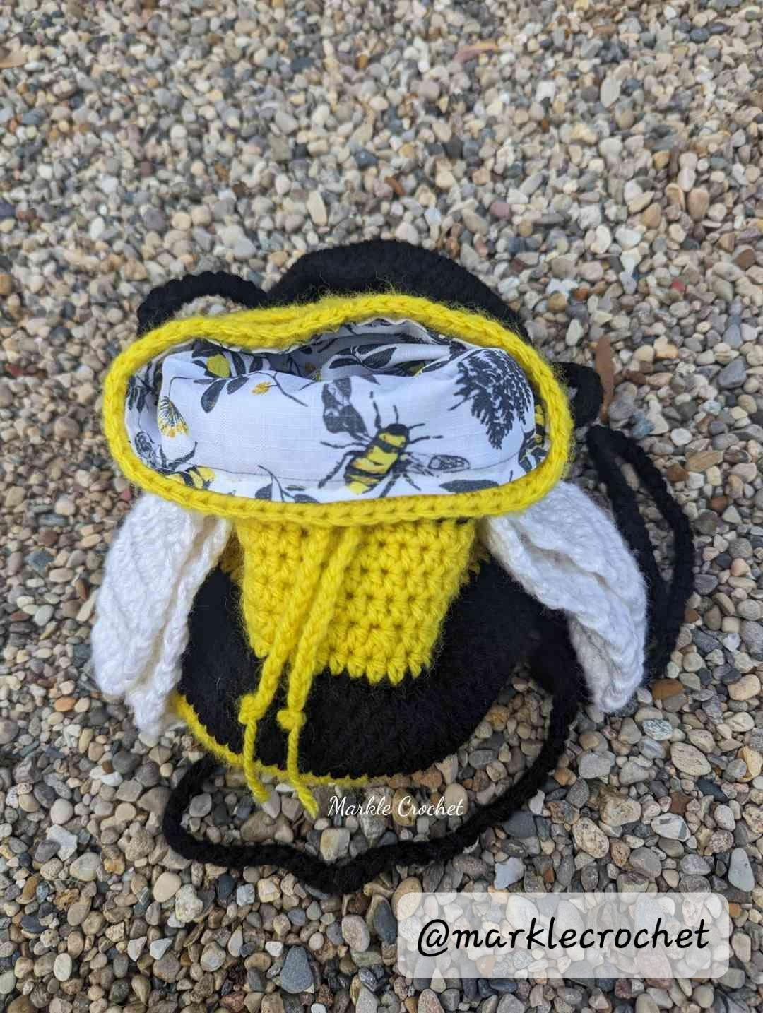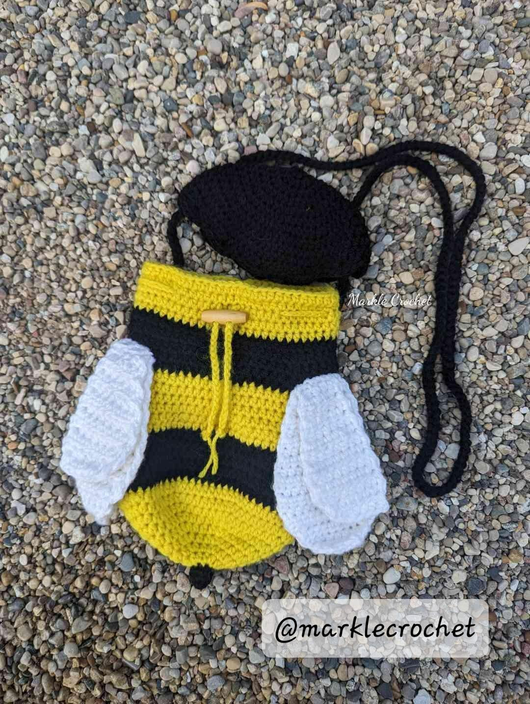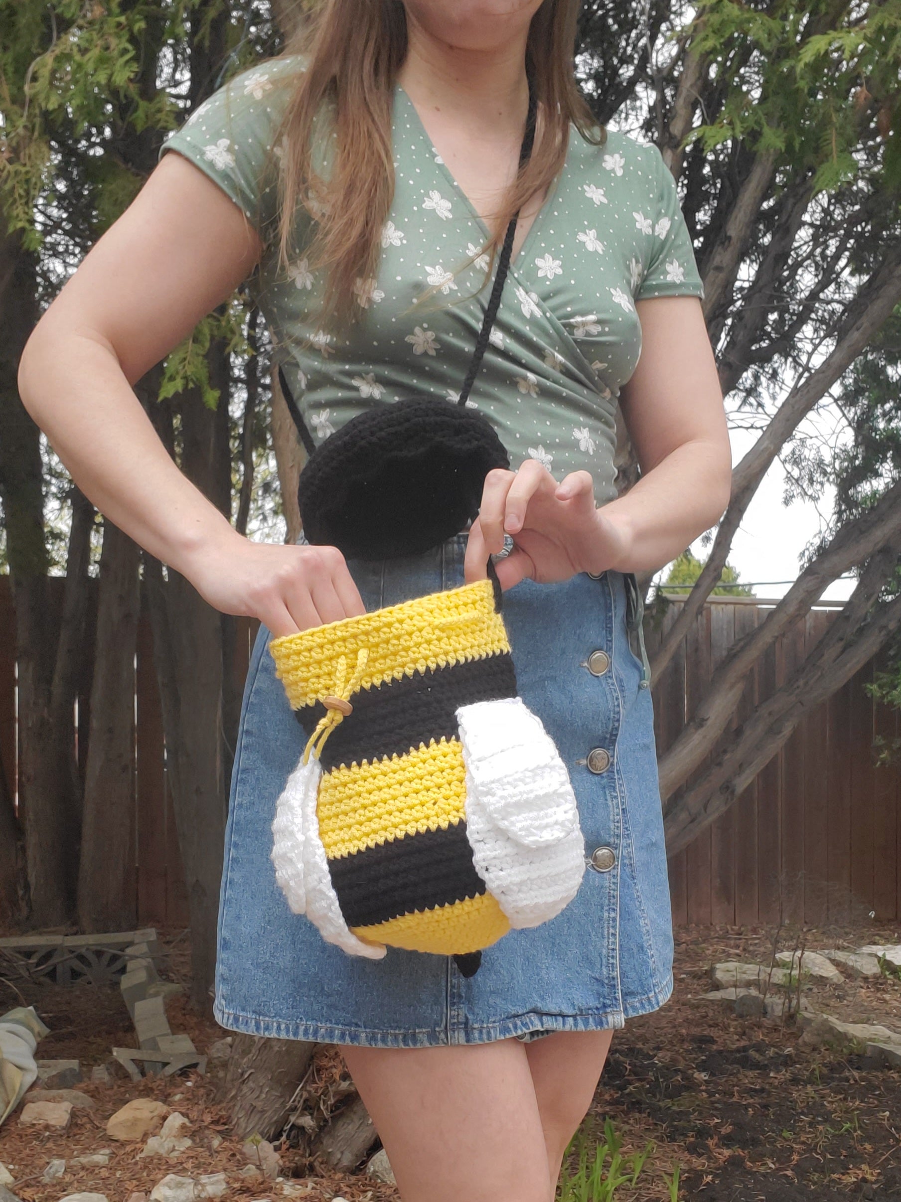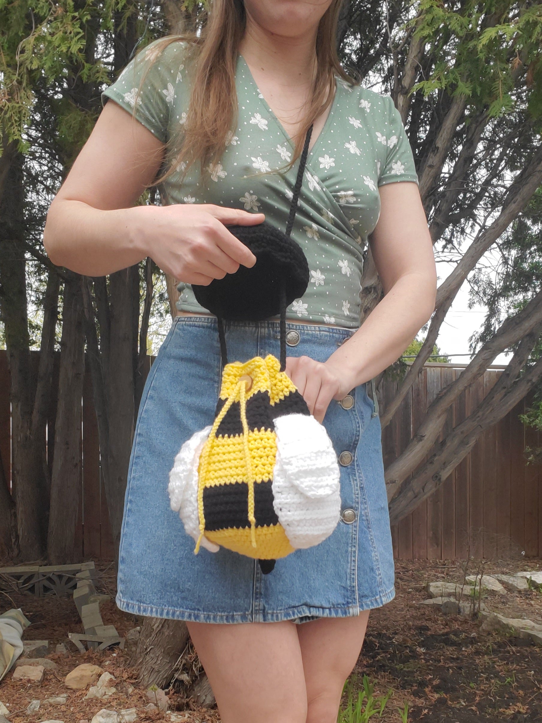 -Worsted weight yarn in whichever color combinations you would like (basic colors: Yellow, Black and White) Thicker, more rigid worsted weight yarn creates a sturdier bag.