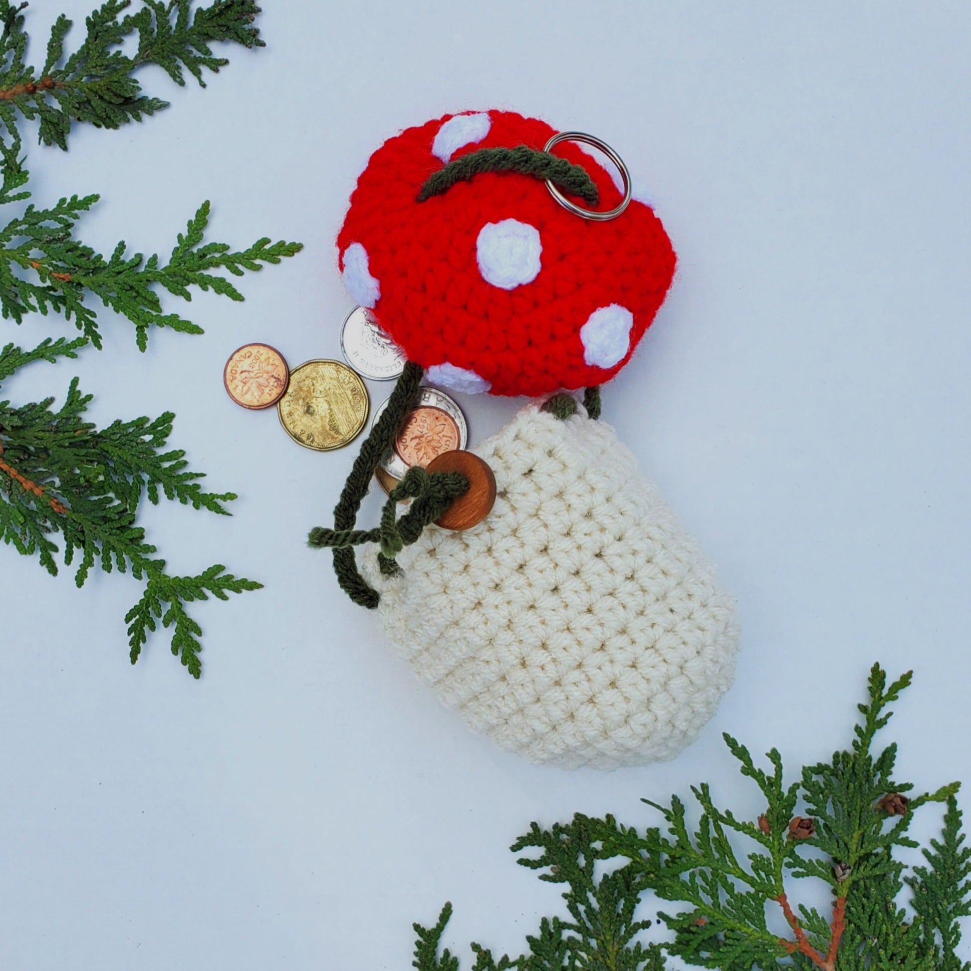 -Worsted weight yarn in whichever color combinations you would like (basic colors: Off white, Red, Green and White), Thicker, more rigid worsted weight yarn creates a sturdier purse.