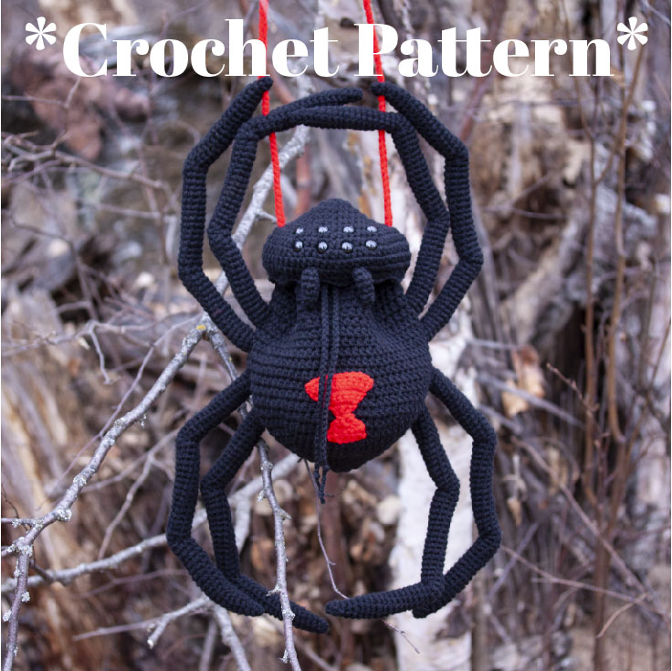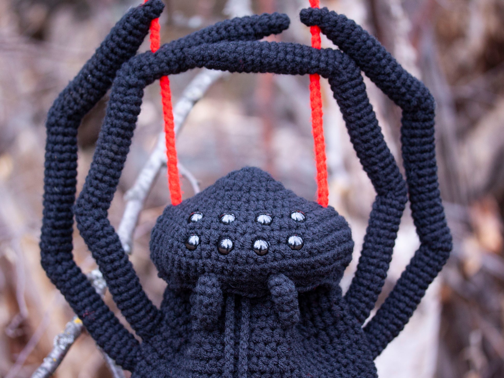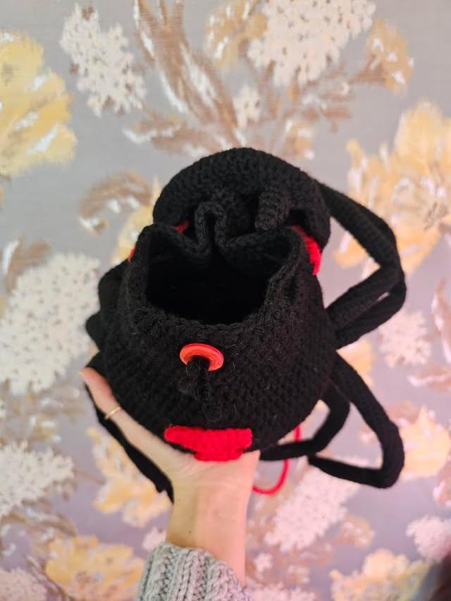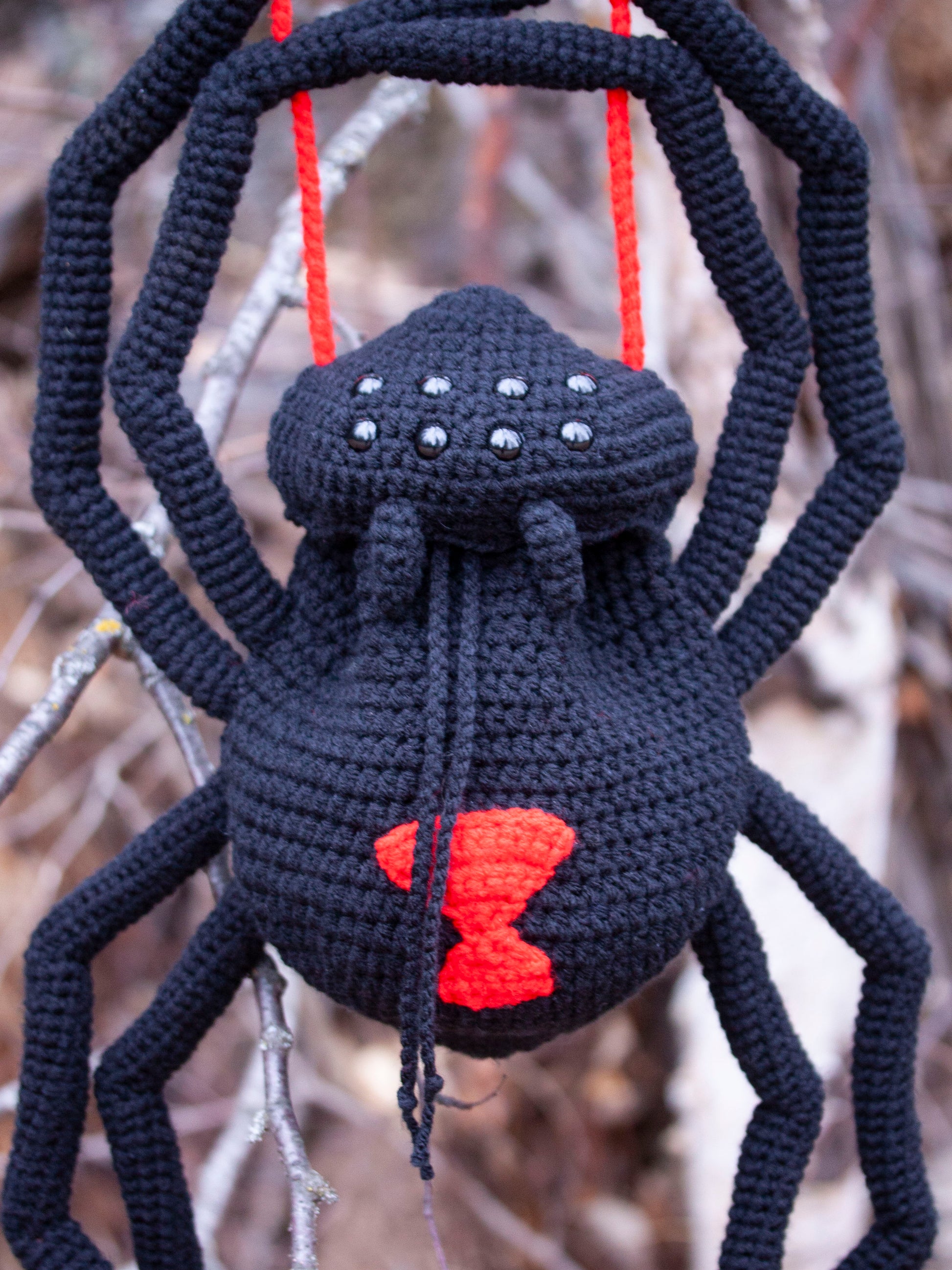 Approx. yardage: 400 yards for the main colour (head, body, legs, fangs, drawstring), 200 yards for the secondary colour (hourglass, strap)