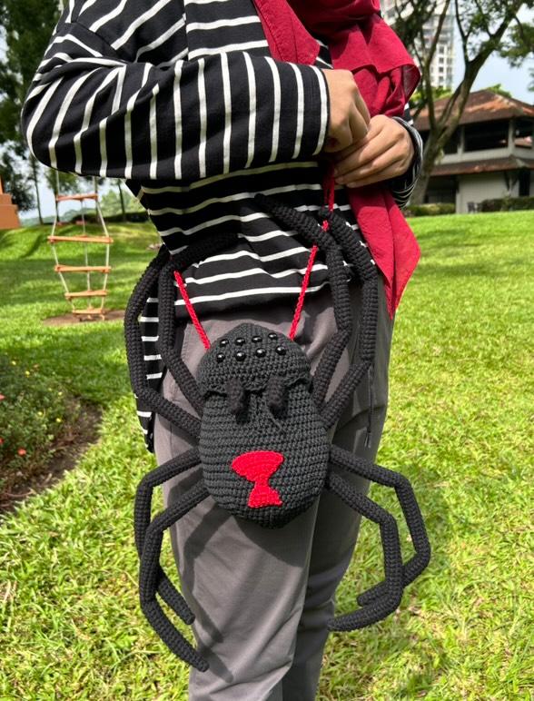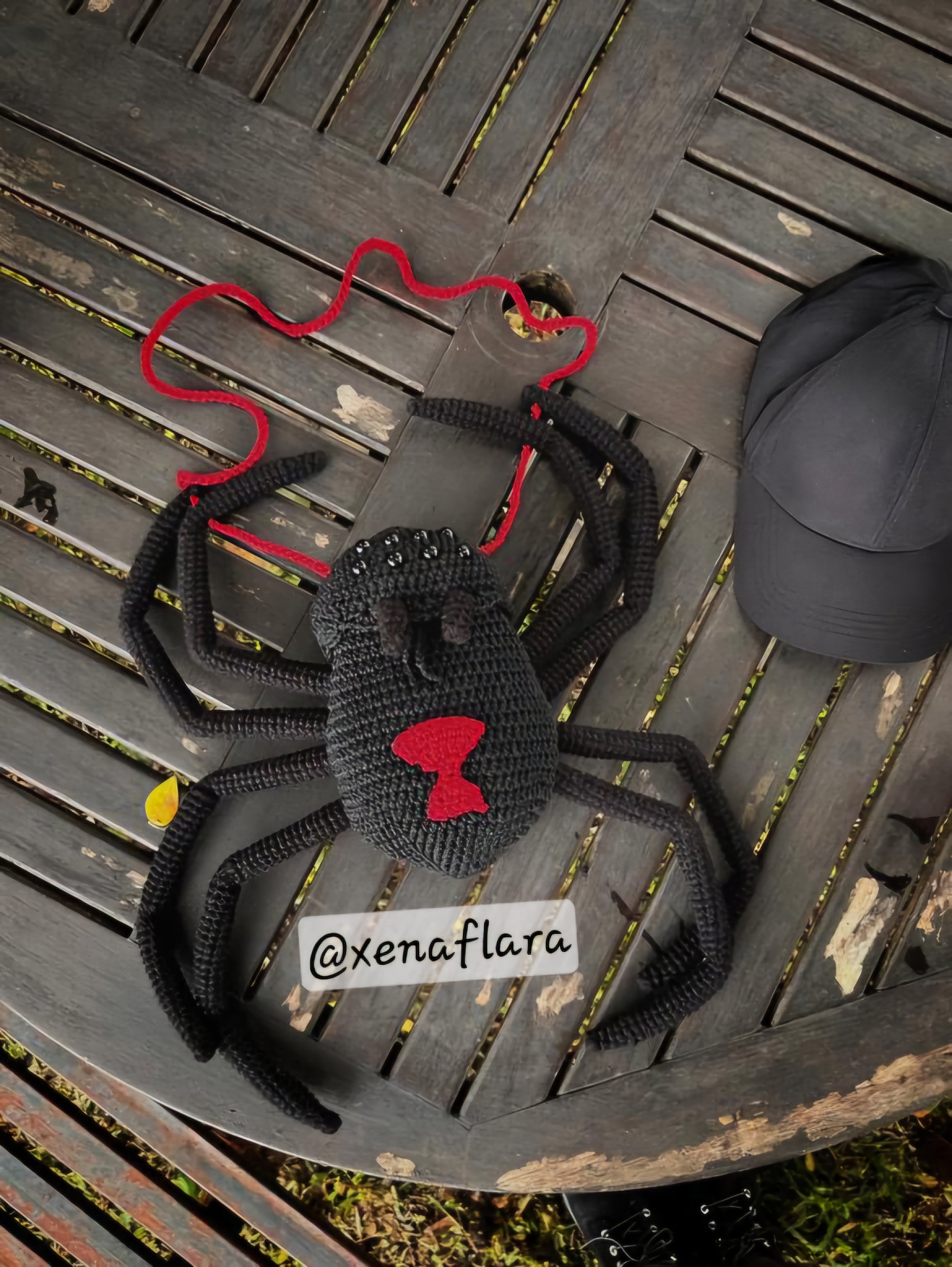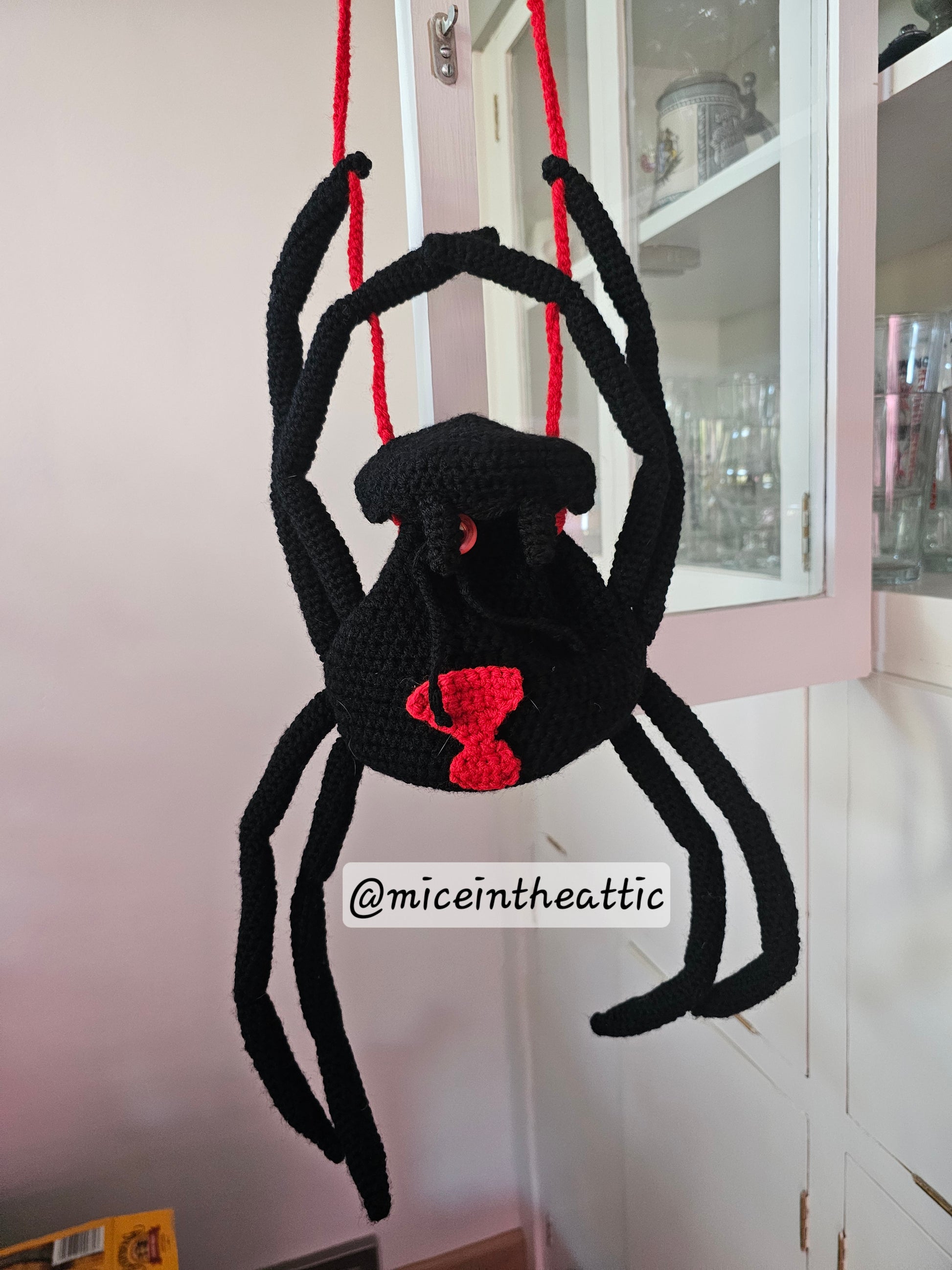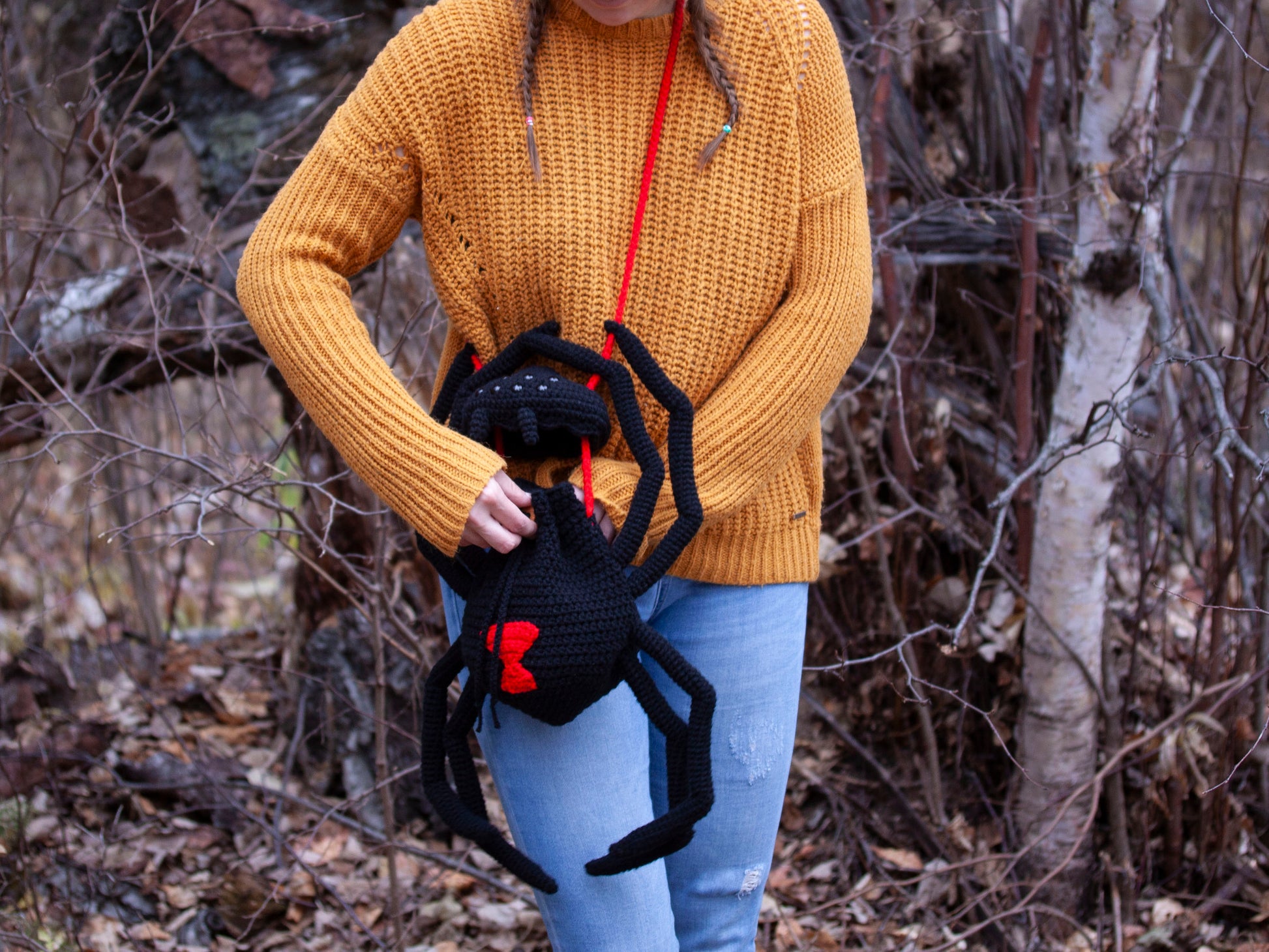 Approx. yardage: 400 yards for the main colour (head, body, legs, fangs, drawstring), 200 yards for the secondary colour (hourglass, strap)