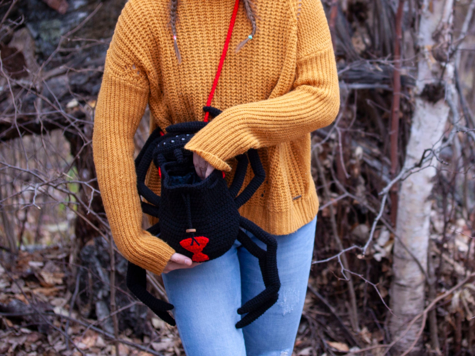 -Worsted weight yarn in whichever color combinations you would like (basic colors: Black and Red) Thicker, more rigid worsted weight yarn creates a sturdier bag.
